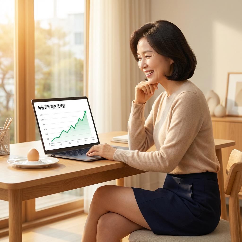 4060 세대 사이에서 '계란'은 단순한 식재료를 넘어 중요한 건강 키워드로 자리 잡고 있습니다. 포털 사이트 다음에서도 4060 세대가 검색하는 건강 정보에 계란 관련 내용이 꾸준히 상위권을 차지합니다. 이는 콜레스테롤에 대한 오랜 오해를 넘어, 계란이 가진 뇌 건강과 근육 유지 효과에 주목하기 시작했다는 의미입니다.