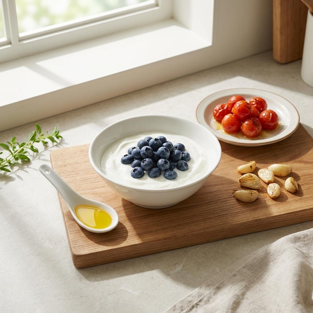 같은 음식이라도 어떻게 먹느냐에 따라 효과는 천차만별입니다. 들기름은 열을 가하지 않고 아침 공복에 한 숟가락 바로 먹는 것이 가장 효과적입니다. 토마토의 라이코펜 성분은 기름과 함께 살짝 익혔을 때 흡수율이 높아집니다. 블루베리 같은 염증에 좋은 과일 은 요거트와 함께 섭취하면 장 건강까지 챙길 수 있습니다. 마늘은 생으로 먹으면 위를 자극할 수 있으니, 살짝 익혀서 드시는 것을 권장합니다.