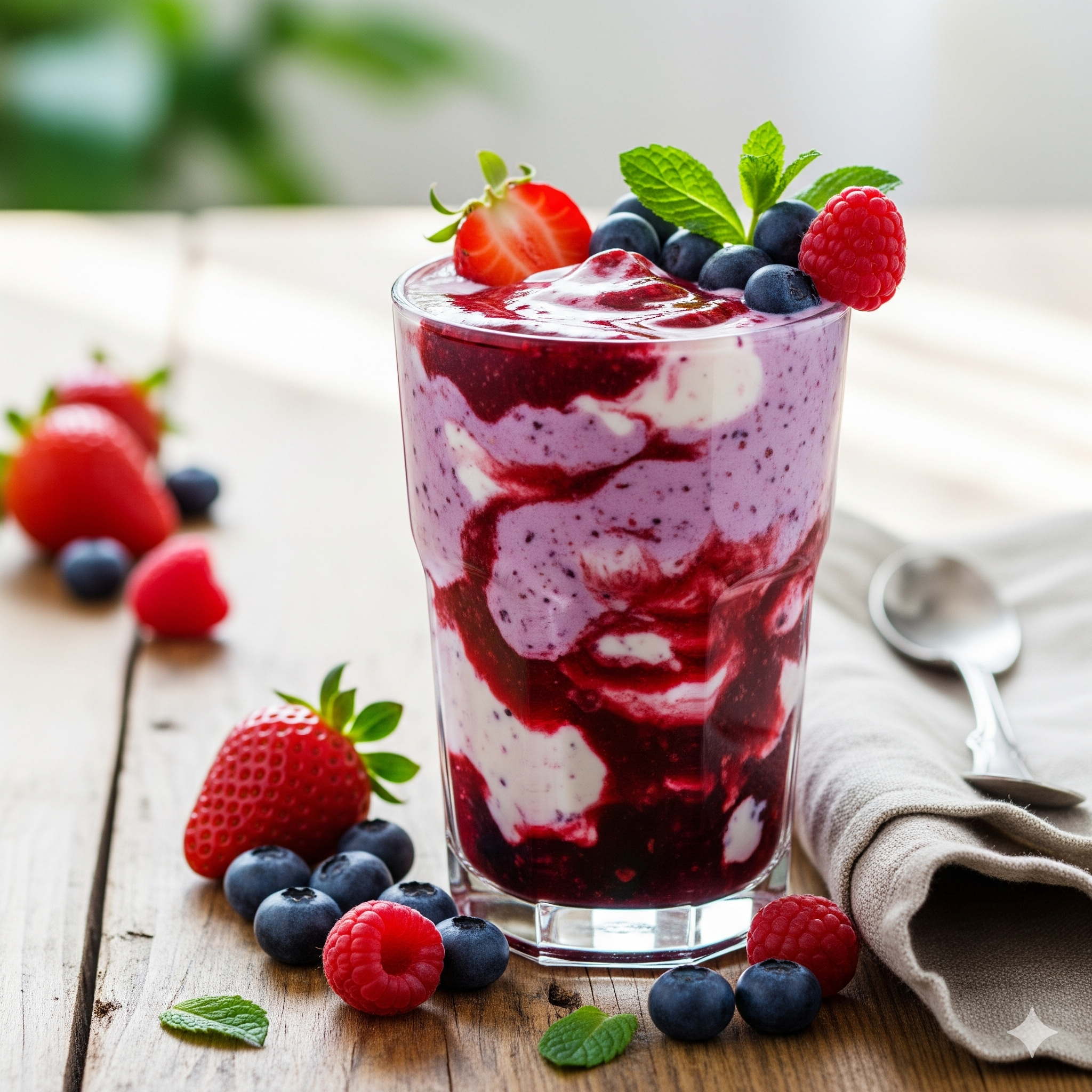 - 플레인 요거트 1컵 (약 200g) - 냉동 베리(딸기, 블루베리, 라즈베리 등) 150g